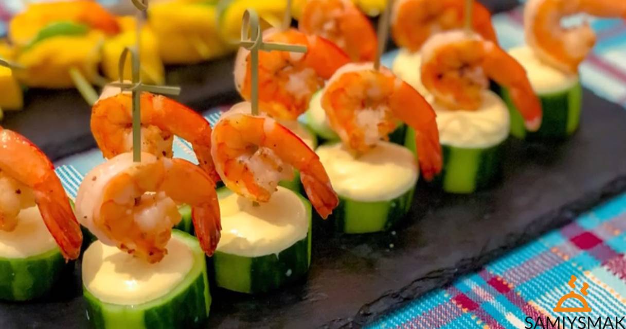 Канапе давно вошли в меню праздничного стола. Интересные и вкусные кусочки полюбились за быстроту приготовления. Шикарный вариант сделать канапе с креветками на шпажках.