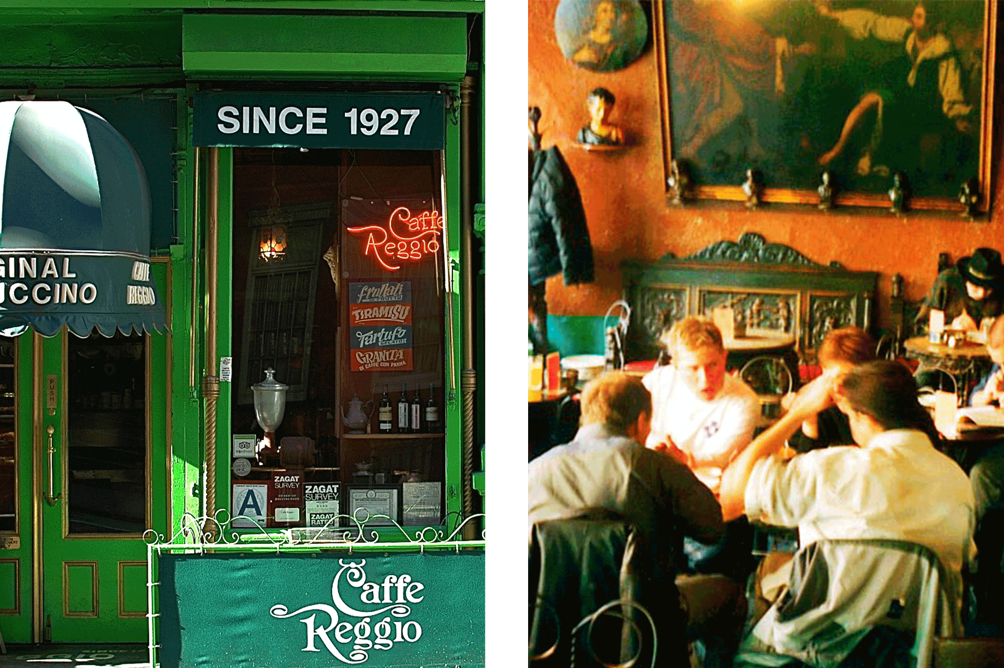 Одна из сцен фильма снималась в знаменитом Caffe Reggio, которое принимает посетителей с 1902 года. Владельцы уверяют: именно они открыли для жителей Нью-Йорка капучино. Такое заявление непременно стоит проверить, так что обязательно загляни. Чашка капучино обойдётся в 3,75 $ (≈ 240 руб.). Кафе находится в двух минутах пешком от Вашингтон-Сквер-парка.