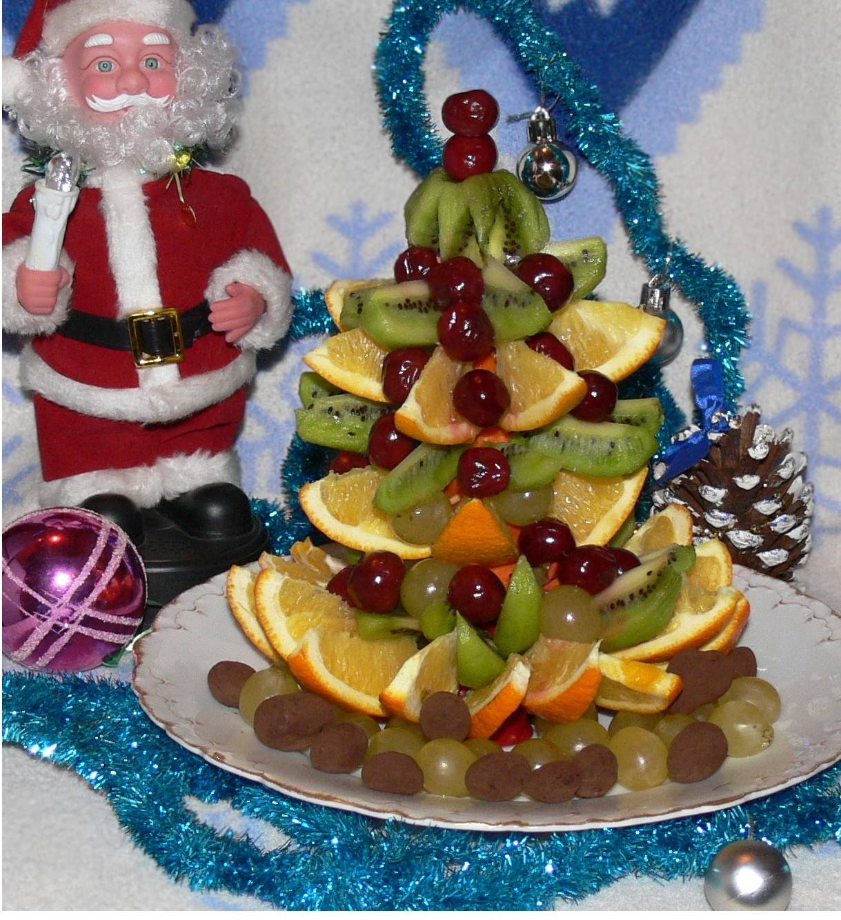 Дополнит любой новогодний стол елочка из фруктов