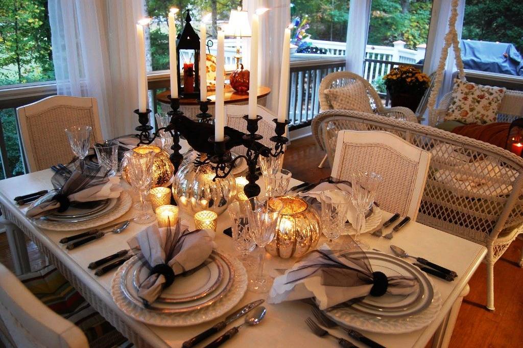 Популярный в недавнем прошлом, как самый «свадебный» рустикальный стиль, только начинает использоваться для оформления домашних торжеств. Это один из самых незамысловатых стилей, позволяющий декорировать стол и помещение природными материалами. Здесь уместны элементы декора в зависимости от сезона за окном. Декоративные тыквы, кукурузные початки, корзины с фруктами – в осенний период сбора урожая. Благоухающие цветы в оригинальных вазонах – в летний период. Еловые лапы, украшенные шишками и свечами с аналогичными композициями, присутствующими на столе – зимой.