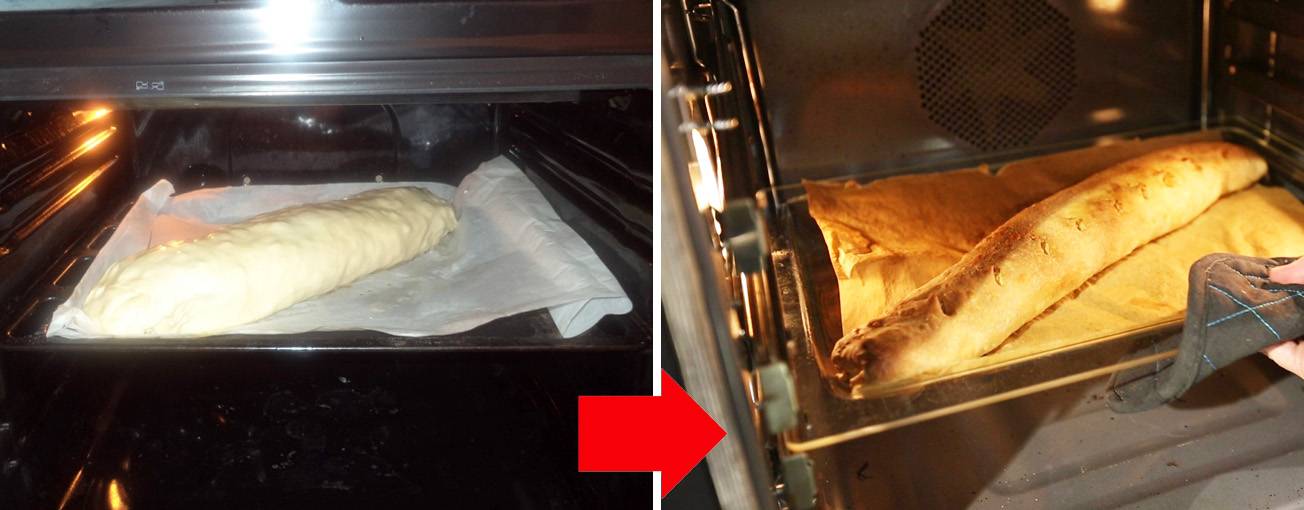 В разогретую до 180о С духовку помещают штрудель и оставляют на 35-40 мин. Сверху должна получиться красивая золотисто-румяная корочка.