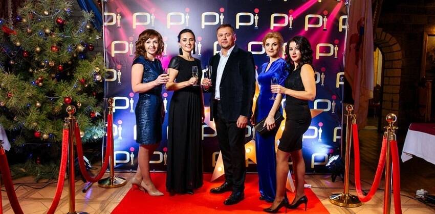 Без фото в потрясающем наряде и идеальной прически не обойтись. Тем более, когда вас только что наградили и засыпали комплиментами. Локацию можно сделать в виде сцены с красными бархатными шторами, шариками, и яркими огнями, где ваши коллеги сделают фото со статуэткой Оскар на память. Фотозона в виде обложки журнала, например «Человек года», также всем понравится.