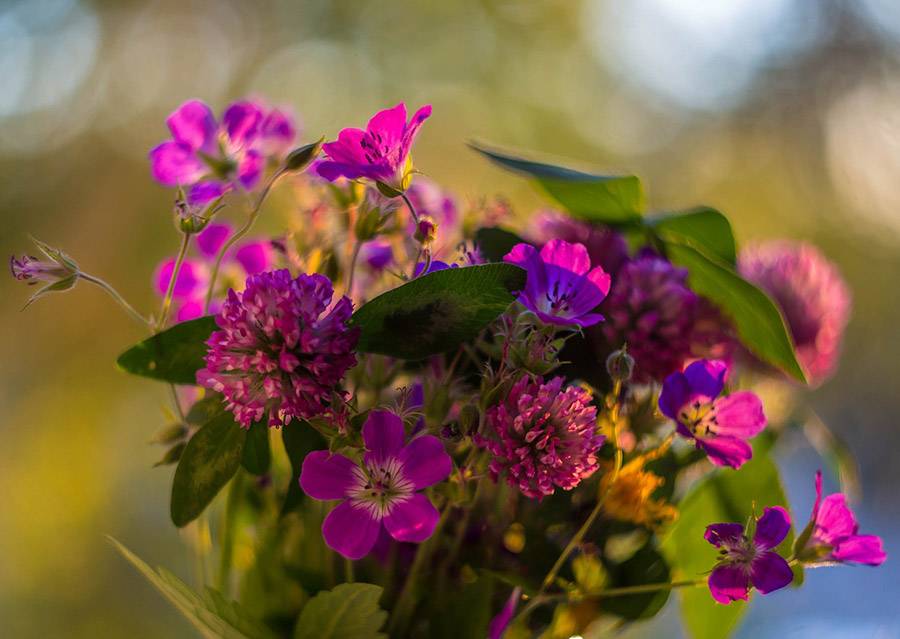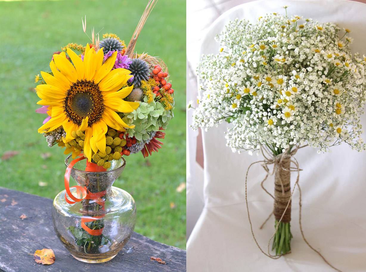 В Англии и Франции гости приносят полевые цветы в подарок молодоженам, но тут нужно учитывать обстановку. Простодушные ромашки, колокольчики, васильки, ландыши, незабудки, маргаритки и анютины глазки подчеркивают искренность и непосредственность чувств, но такая задушевность едва ли уместна на гламурной свадьбе в духе «Великого Гэтсби». Зато на выездной церемонии в стиле кантри букет ромашек примут на ура!