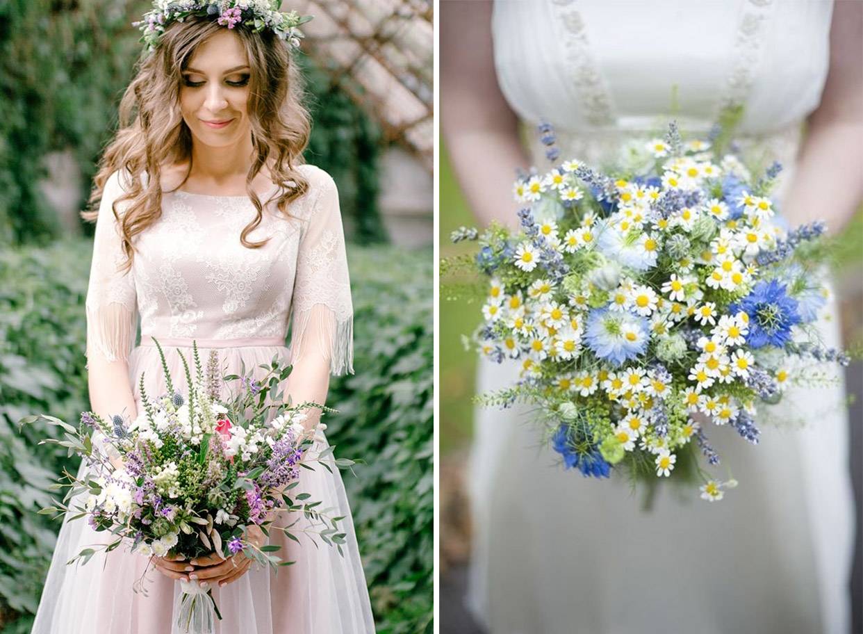 Полевые цветы станут прекрасным дополнением к образу невесты. Одними из самых популярных композиций из этого растения считаются: