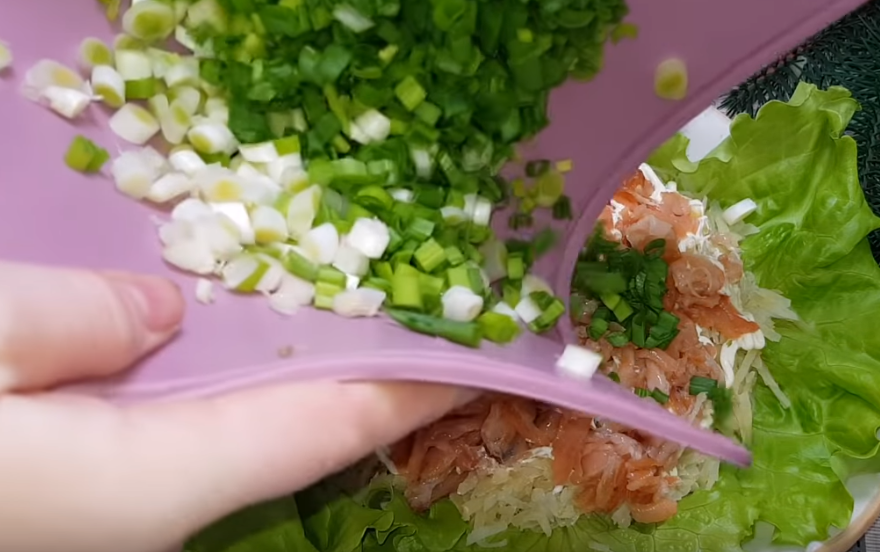 - Укроп, зеленый лук, черная или красная икра для украшения