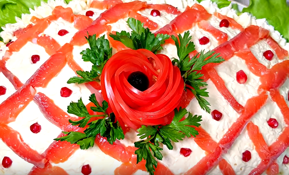 Готовую закуску оставить пропитаться в холодном месте на несколько часов. Рекомендуется его приготовить заранее, а после поставить на праздничный стол.
