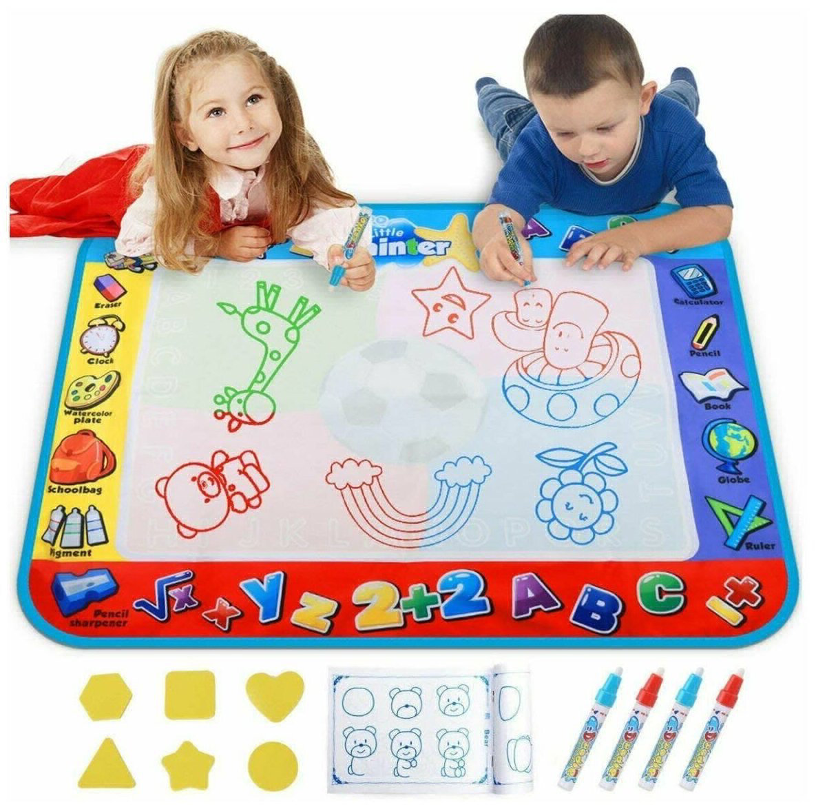 Необычная игрушка, представляющая собой большое полотно и несколько водяных кистей, которые оставляют следы без красок.