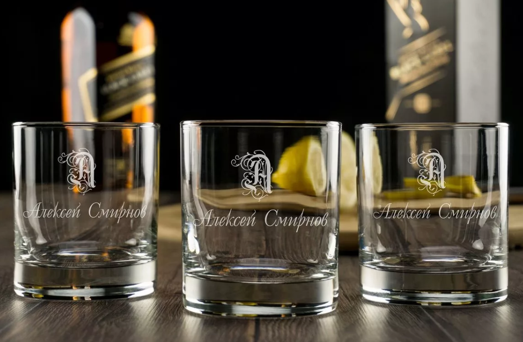 Можно подарить стакан для виски с именной гравировкой. Его цена – 450 руб.