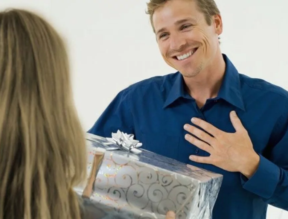 В момент вручения постарайтесь смотреть мужу в глаза. Вы покажете, что дарите подарок от чистого сердца и искренне.