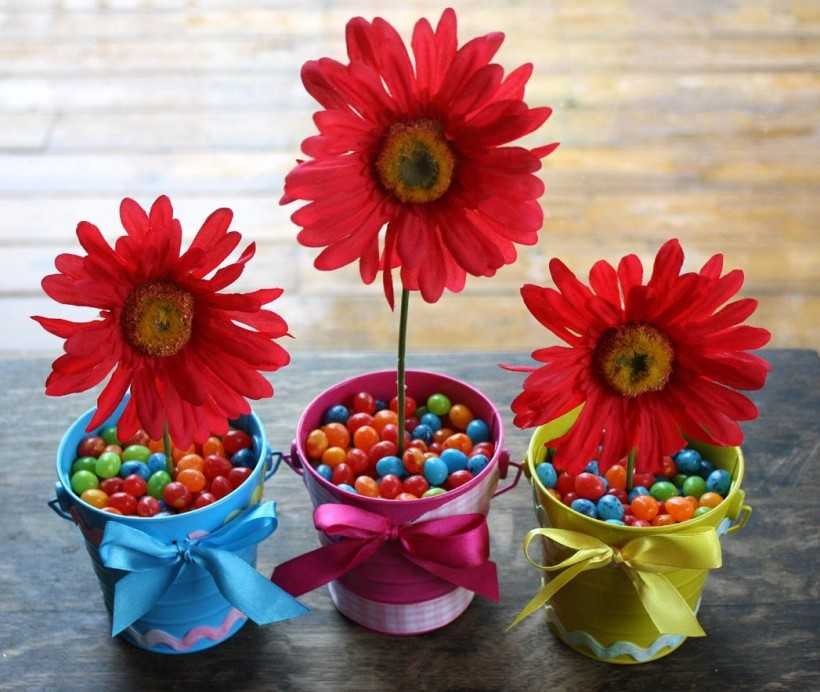 Не знаете, какой подарок подарить любителю сладкого? Не проблема, просто сделайте презент из конфет. Вот парочка вариантов интересных поделок: