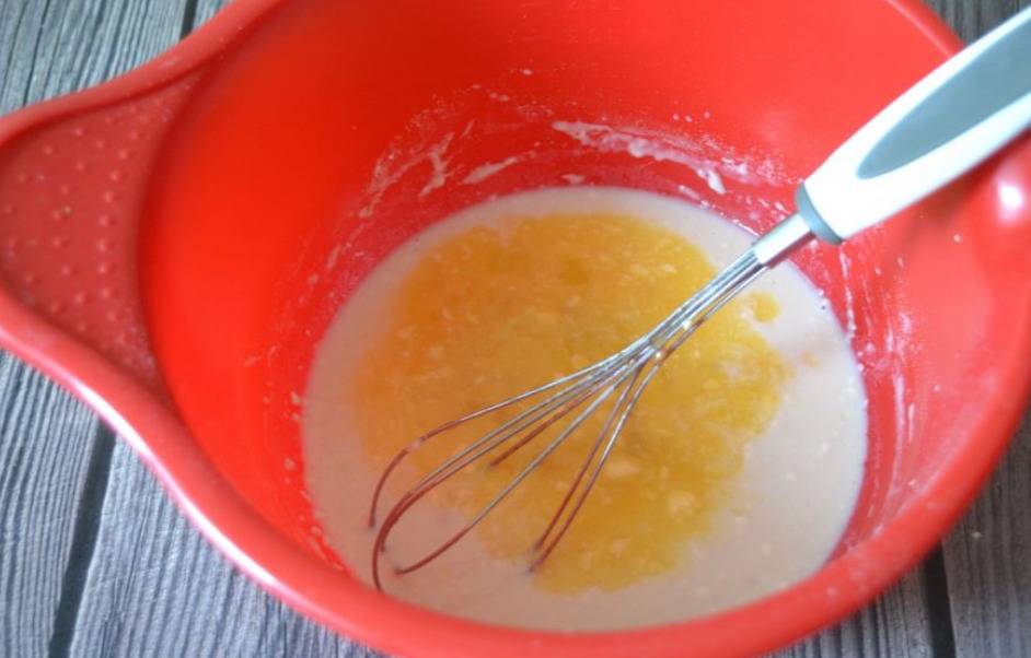 Важно, чтобы смесь была чуть-чуть теплой. В нее добавляют сахарный песок (ст