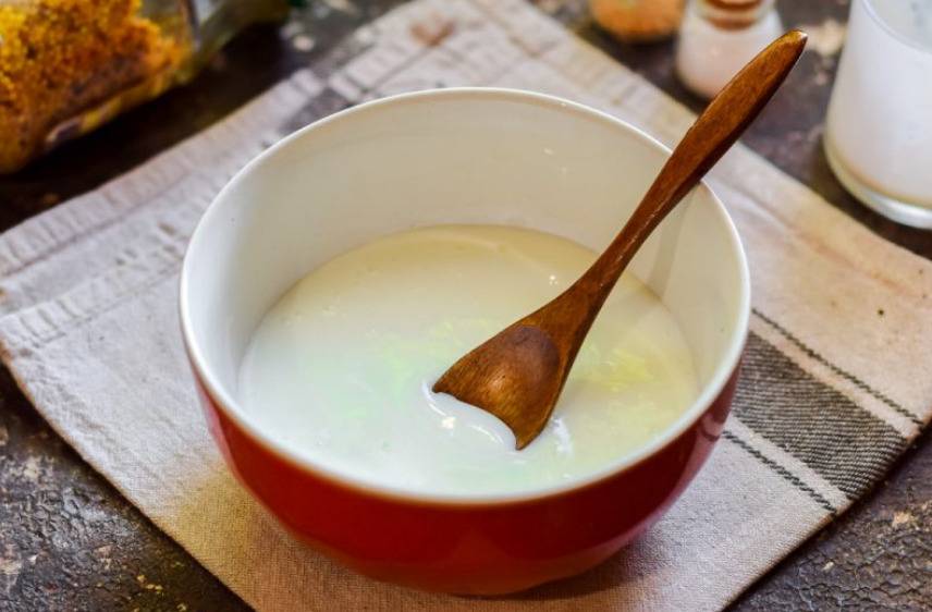 ложку), дрожжи и муку (3 ст. ложки). Затем все перемешивают до однородного состояния, без комков, и накрывают на полчаса полотенцем.