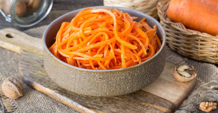 Морковь по-корейски несложно приготовить самостоятельно, но для этого нужно время – устроить сюрприз в праздничный день можно только с уже готовым «корейским» салатом. Очень хорошо с этой закуской сочетается картофель в кожуре и сливочным маслом по-деревенски, а также тушеное мясо. Чтобы у него образовалась красивая корочка, его сначала обжаривают на сливочном масле на среднем огне, после чего добавляют кипяток, тушат около 10-15 минут, а после убавляют огонь до минимума и томят. Так мясо не теряет лишние соки и вкус.