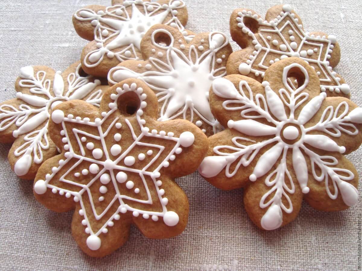 Снежинки, звездочки и елочки на льняной скатерти будут смотреться очень органично. Для украшения можно использовать гирлянды и зеркальные шары