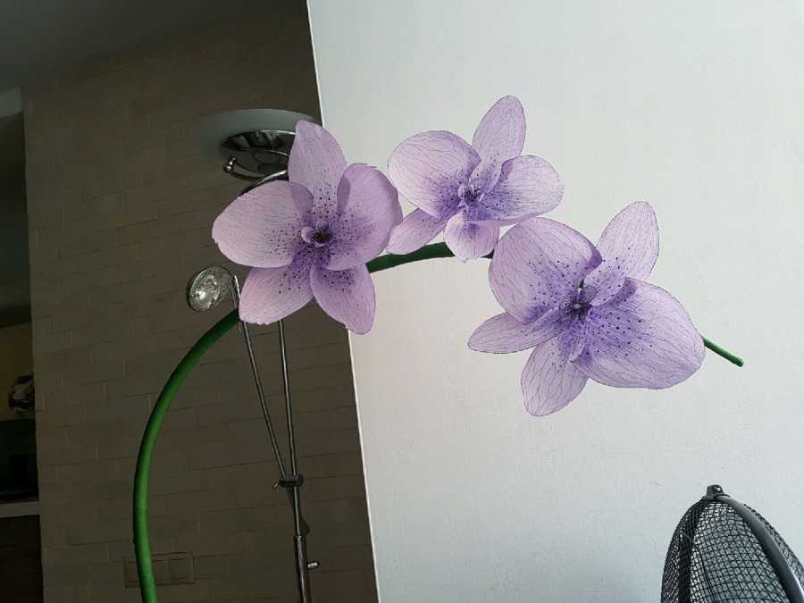 Если мы посмотрим фото ростовых цветов из гофрированной бумаги, то заметим, чаще всего стебель представляет собой изогнутую «проволоку» с кольцом на конце, что придает всей конструкции устойчивость. Подобная конструкция выполняются из метала, поэтому вряд ли у вас получится воссоздать ее в домашних условиях, здесь необходимо специальное оборудование и навыки работы с ним.