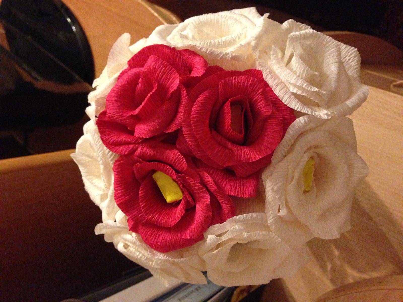 Технология выполнения работы ничем не отличается от обычной процедуры изготовления цветов. Но для букета из крупных растений понадобится больше материалов. Они станут великолепным украшением интерьера на торжестве.
