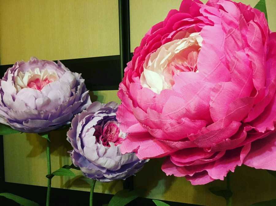 Большие цветы из бумаги можно сделать и для фотосессии.