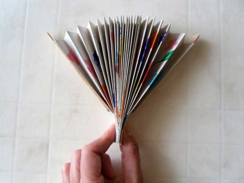 Чтобы веер, своими руками изготовленный, получился по-настоящему элегантным, надо позаботиться о том, чтобы все детали были выполнены аккуратно. После того как палочки будут приклеены, на них надо положить вторую заготовку из белой бумаги. Для лучшего закрепления их надо прижать на двадцать минут каким-нибудь тяжелым предметом. Для этого может подойти книга. Затем надо кусачками уравнять палочки, после чего сгибать в разных направлениях получившуюся конструкцию.