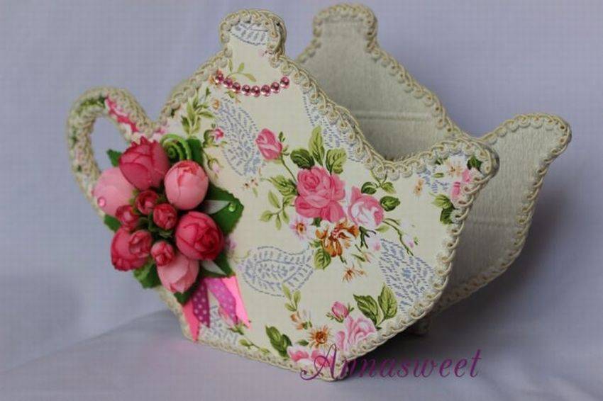 Оформление чайного стола также, немаловажно. Например, подавать чай, лучше всего в красивых чашечках и блюдцах, также можно оригинально оформить и подставку для чайных пакетиков своими руками. Представим такие подставки в подборке из 10 фото