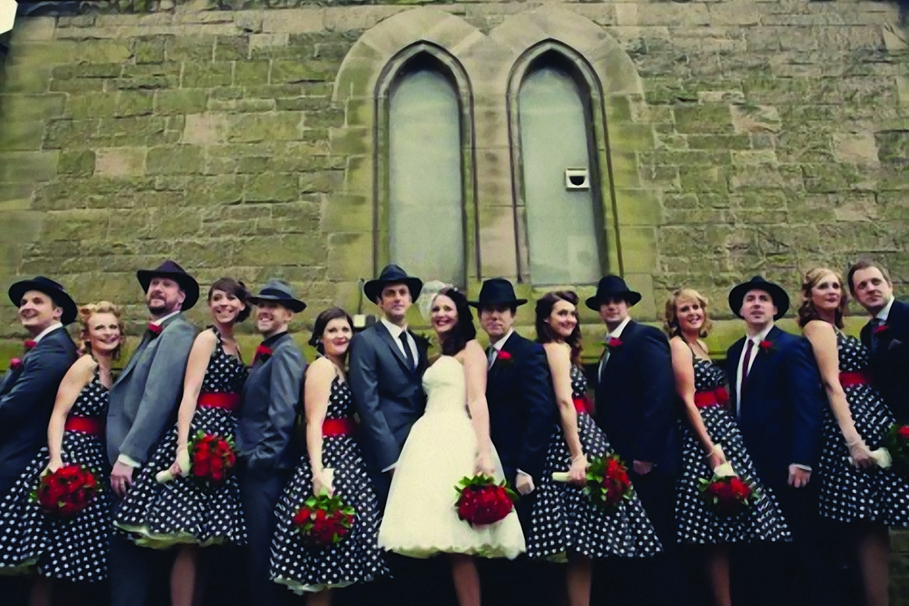 Отражением британского варианта бандитского стиля стали герои сериала «Острые козырьки». Сдержанный шик цыганских гангстеров, одетых по последней моде в строгие костюмы-тройки и штиблеты, вполне подойдет в качестве дресс-кода мероприятия. Пару им составят девушки в небольших шляпках, прямых платьях и туфлях-лодочках. Невеста предстает в классическом наряде с оборками и фатой, ведь 20-е годы в Британии консервативны.