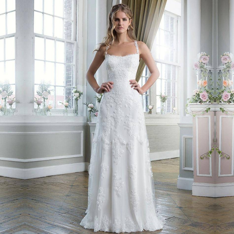 С бретелями. Этот фасон часто выбирают для летней свадьбы. И выглядит он так же красиво, как и остальные. Тонкие бретели сделают образ более соблазнительным. Однако невестам с пышными формами стоит выбирать широкие бретели, чтобы не лишать образ женственности и изящности.