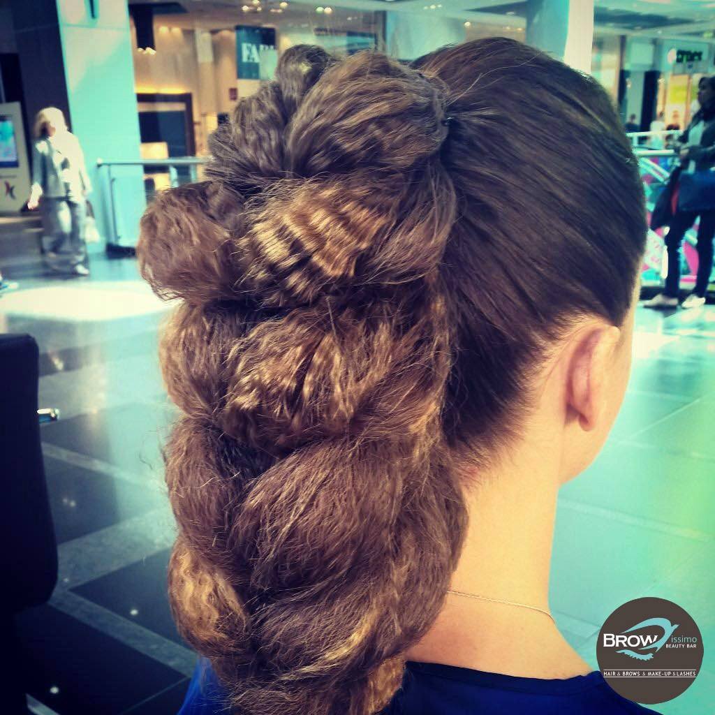 - Отведите жгут назад и закрепите невидимкой, последнюю прикройте волосами