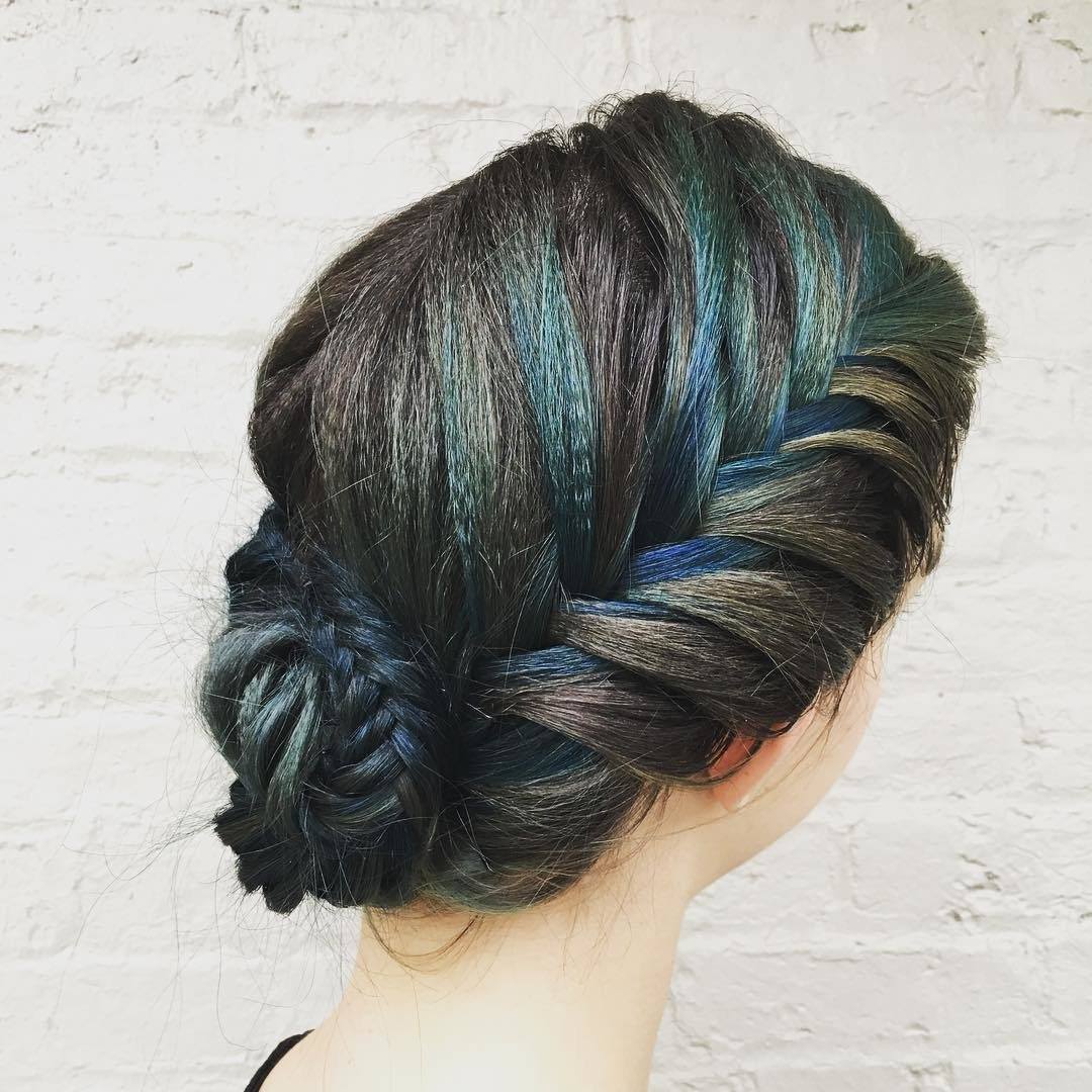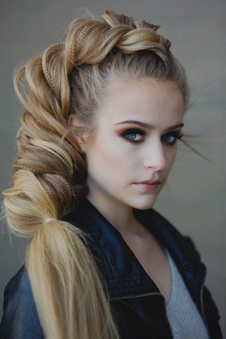 Такая укладка выглядит необычно и подходит настоящим бунтаркам, которые выбрали на выпускной не классическое платье, а комбинезон или брючный костюм.