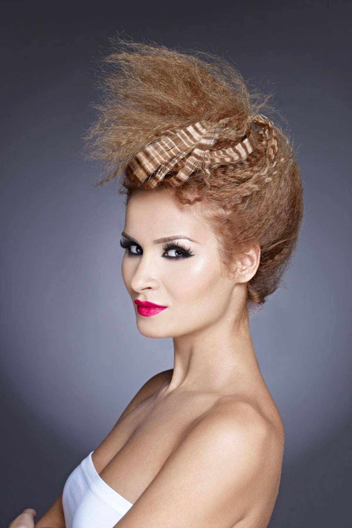 - Соберите локоны на макушке и сделайте начес. Зафиксируйте его лаком.