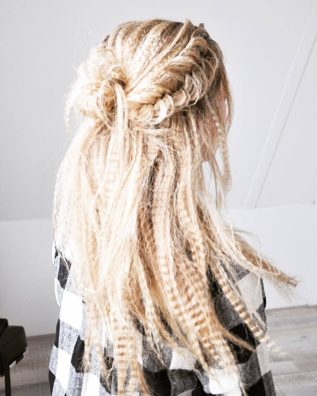 - Распустите закрепленные спереди волосы, заколите их вместе с косичками к хвосту.