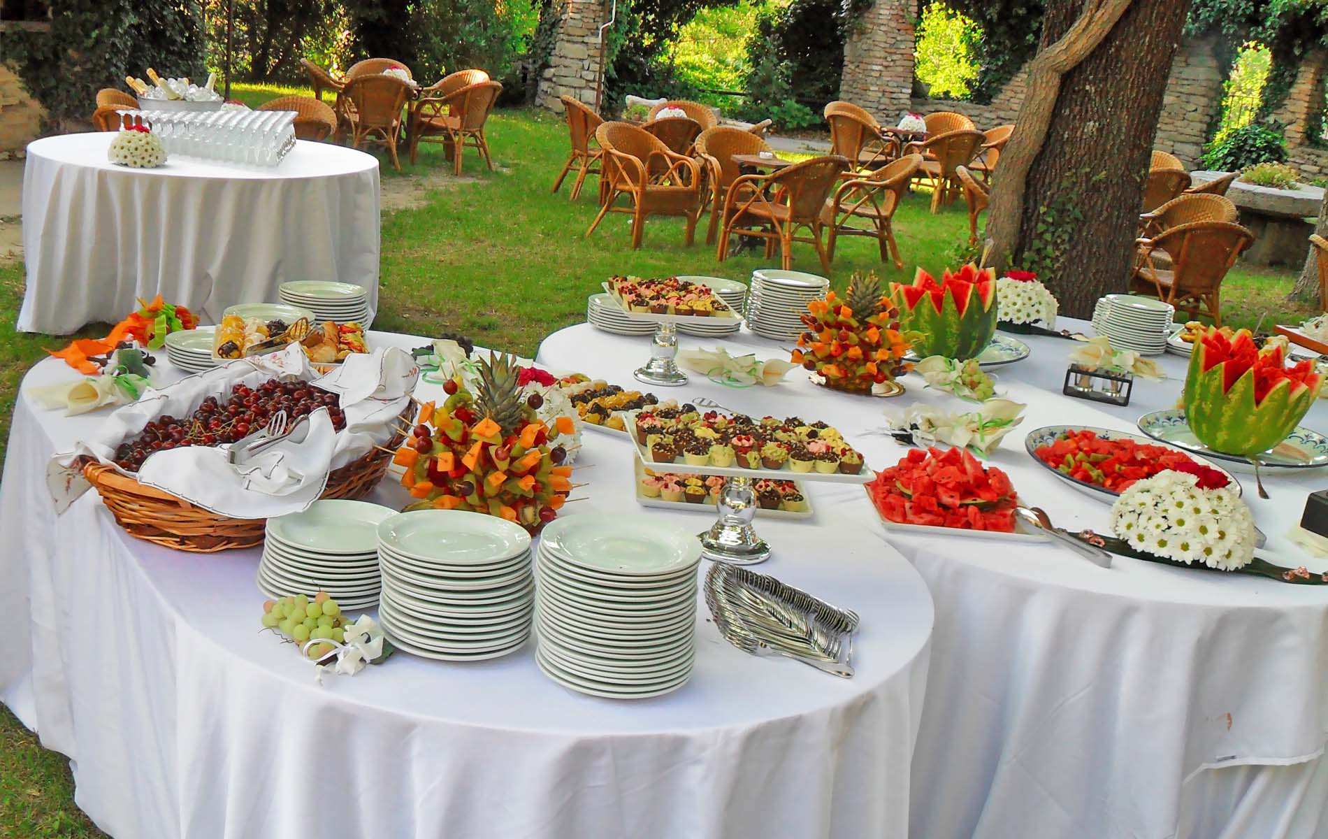 - Помните, что фуршетный стол должен быть выше обычного. Тогда гостям будет удобно брать с него угощения и напитки.