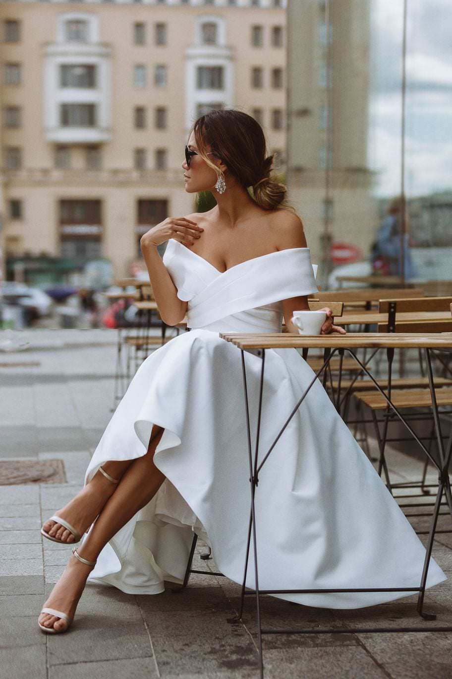 Простые укороченные наряды становятся все более модными. Счастливая избранница в таком виде выделяется среди классических невест. В 2019 г. представлена целая линейка новых образов.