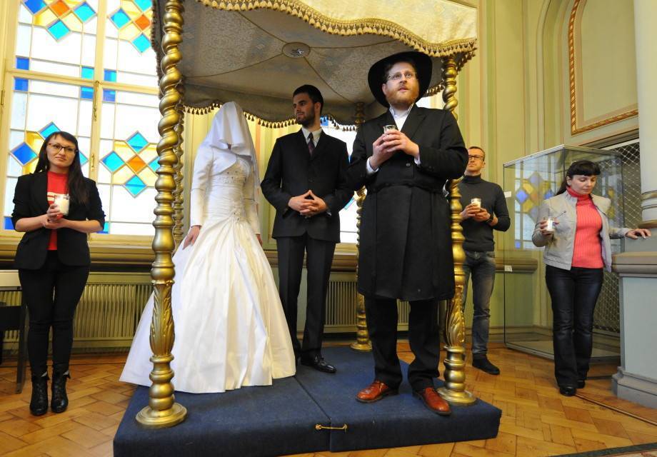 Еврейская свадьба также богата весьма любопытными традициями. Вступать в брак можно в любой день, кроме шаббата – этот день, как известно, для всех евреев священен. Интересно, что еврейская свадьба имеет некоторые схожие черты с кавказской: например, первой в зале, где проходит церемония, появляется невеста, а жених некоторое время отсутствует. Пока будущая жена принимает гостей, ее избранник вместе с раввинами подписывает документы: сначала «тнаим» – договор об обручении, а затем «ктубу» – брачный договор.