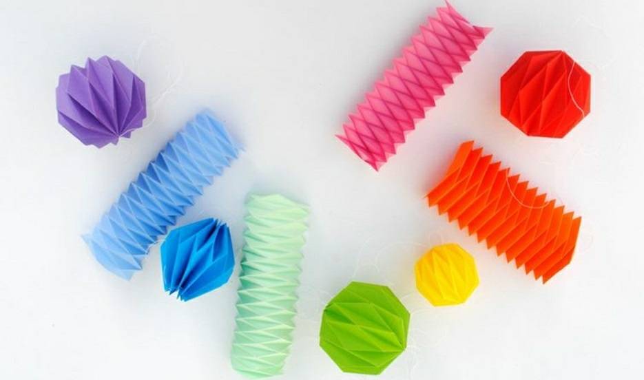 Шаблоны игрушек-кристаллов, пирамидок и кубиков из бумаги на елку
