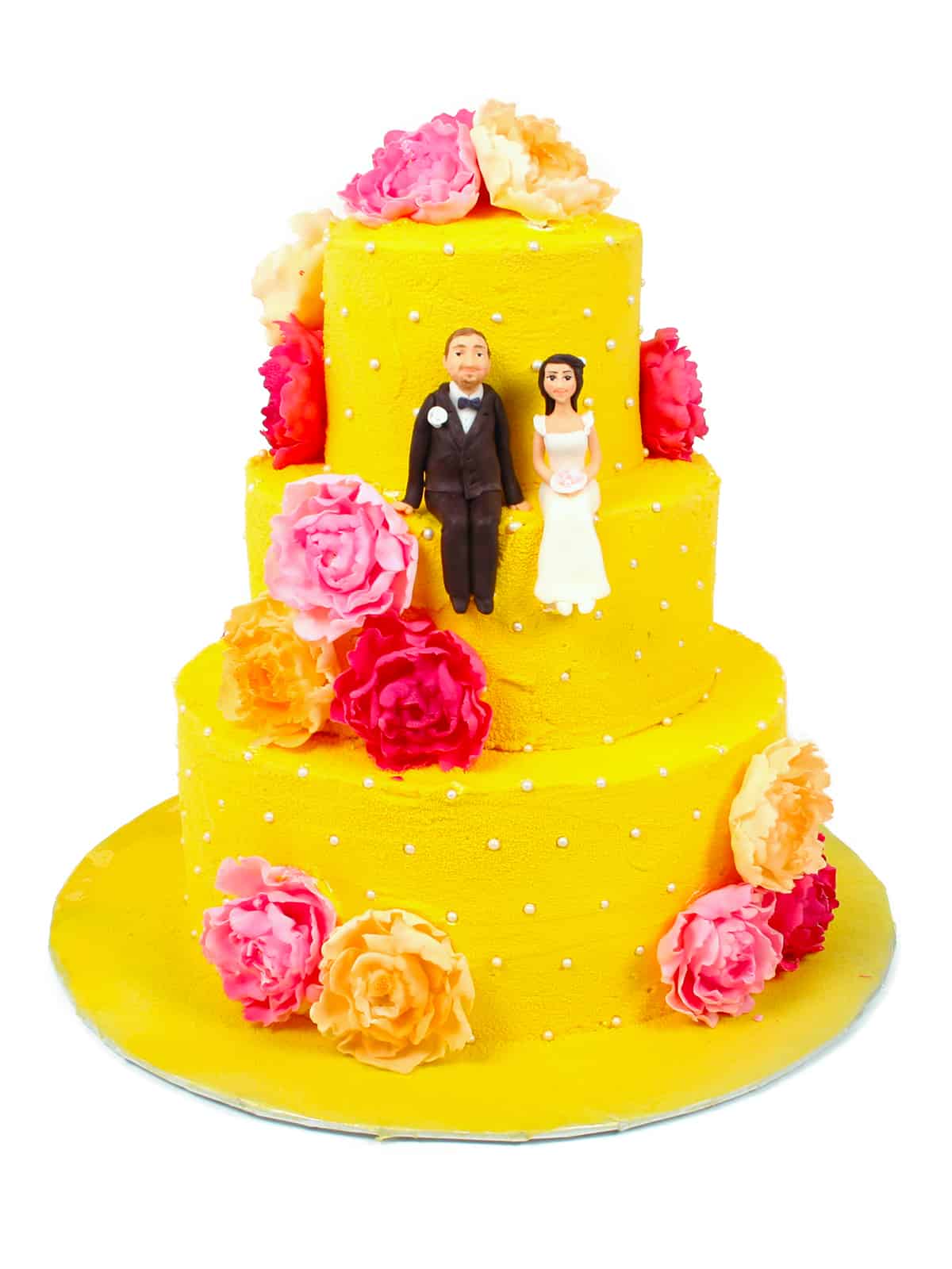 Какое же событие обходится без праздничного торта? Закажите какой-то оригинальный тортик, на который, например, установят фигурки мужа и жены, выполнив его также в жёлтой цветовой гамме. Торт торжественно разрезается под конец вечера виновниками события.