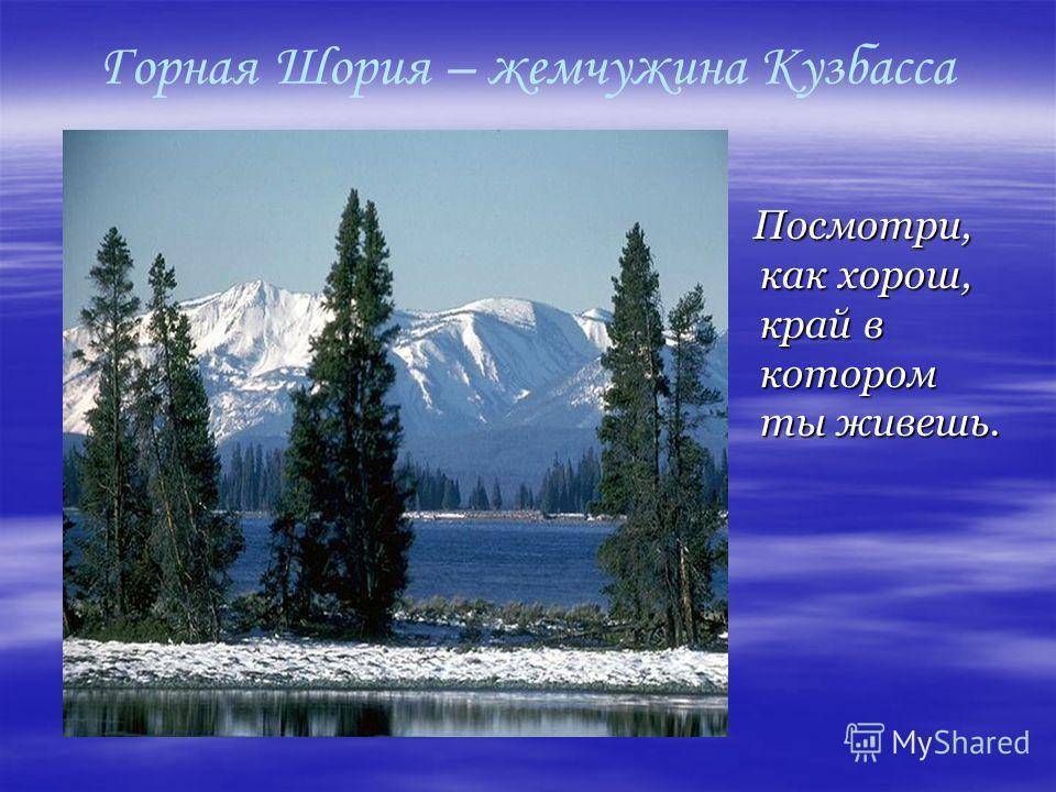 Презентация на тему: ” Горная Шория – жемчужина Кузбасса Посмотри, как хорош, край в котором ты живешь.” — Транскрипт: