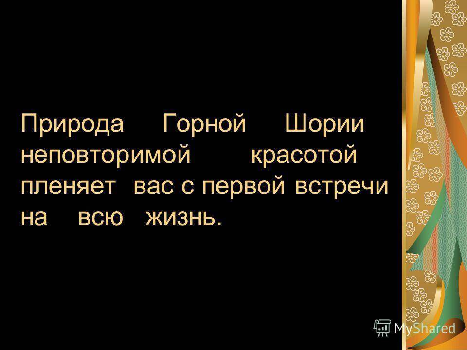 Горная Шория – жемчужина Кузбасса Посмотри, как хорош, край в котором ты живешь.