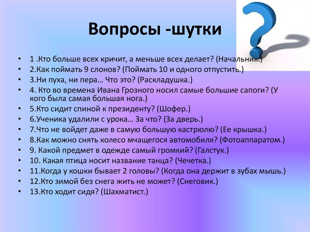 Какие вопросы может задать ведущий? Приблизительный перечень: