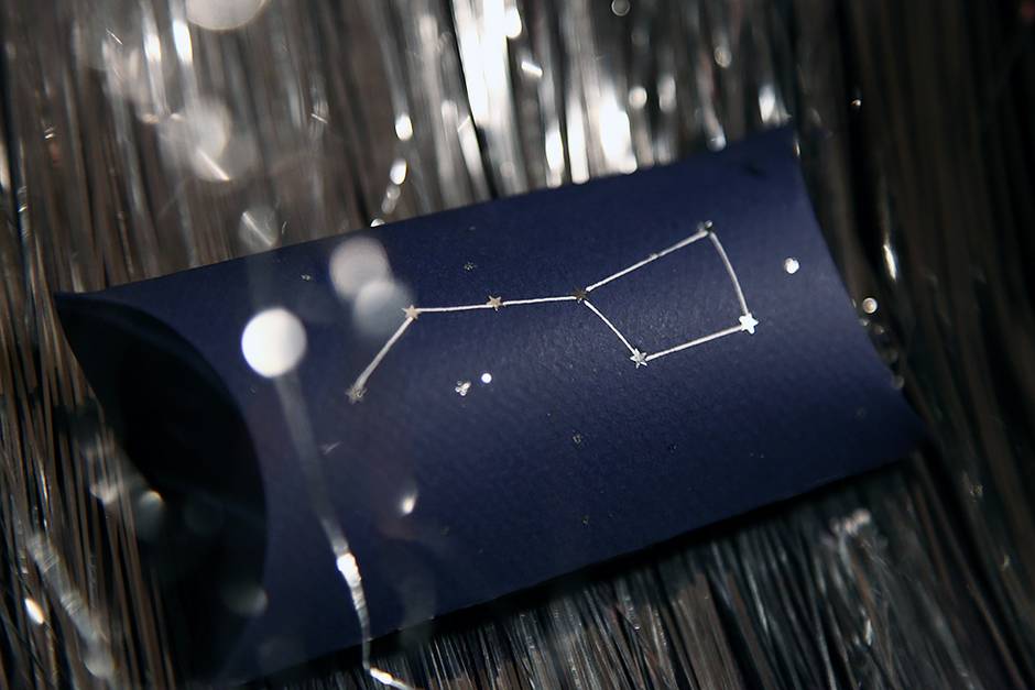 - Приложите бумагу для упаковки к коробке с подарком. На обратной стороне бумаги обведите верх коробки.