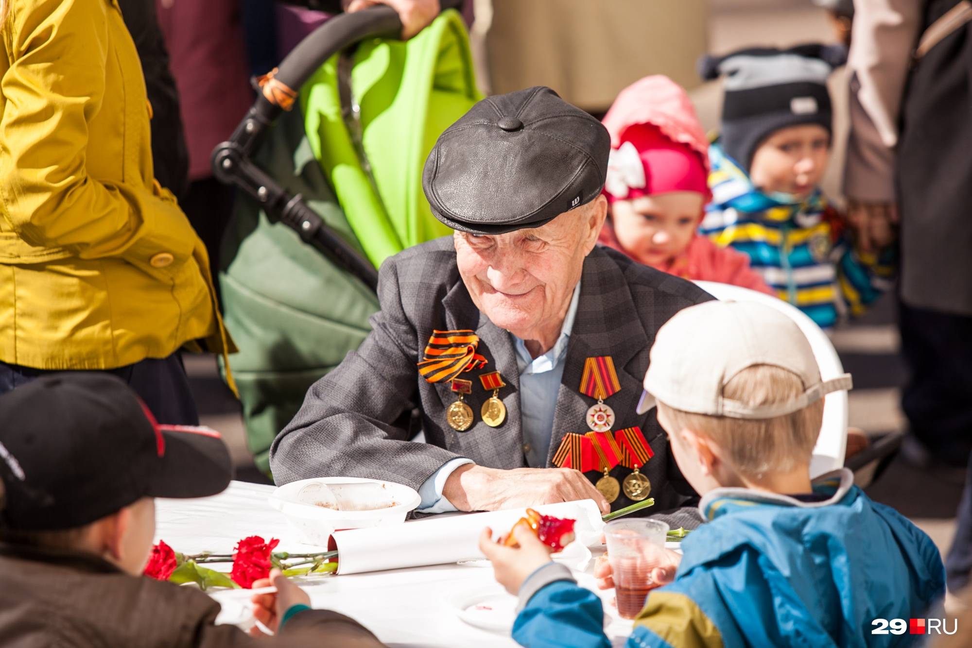 В образовательные учреждения приглашают свидетелей войны. Ветераны рассказывают ученикам о событиях прошедших лет. Дети поздравляют победителей, читают стихи и дарят цветы.