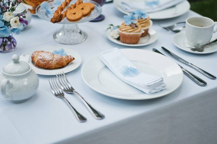 Что касается сервировки, здесь нет ничего необычного. На персону приходится тарелка, вилка, ложка, нож, бокал/стакан для сока, в зависимости от выбранного напитка. Подробную информацию вы можете почитать на специальных ресурсах, рассказывающих о главных правилах этикета.