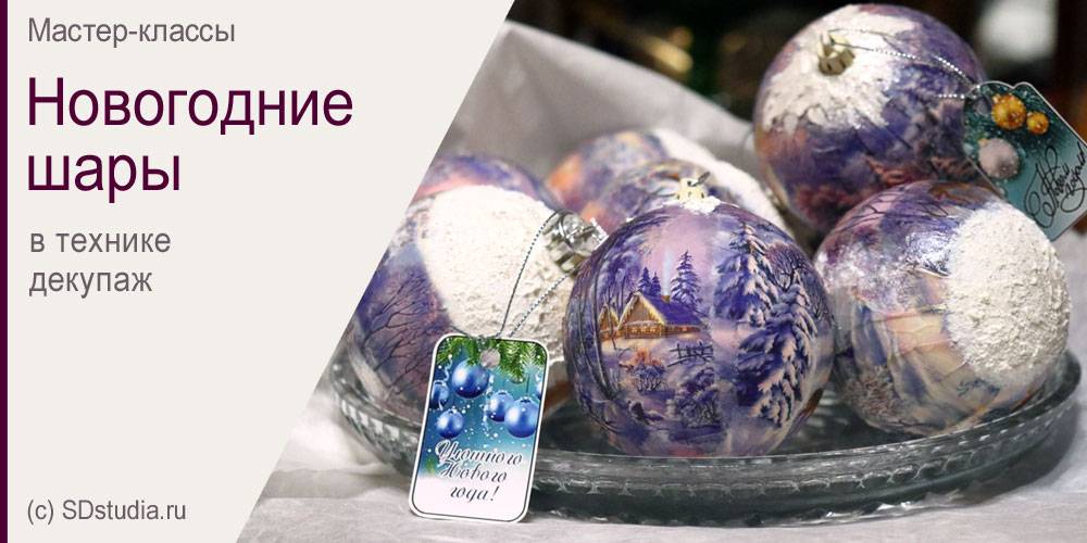 Сложность работы зависит от того, насколько хорошо вы знакомы с декупажем, какие материалы вам доступны, какие его приемы освоили. Можно сделать довольно простой новогодний шарик только перекрасив его и приклеив интересные мотивы из декупажной карты или салфетки (вариант для начинающих), а можно добавить объемную роспись контурами, сделать потертости, трещинки и шероховатости «под старину», использовать воски и потали для создания различных эффектов.