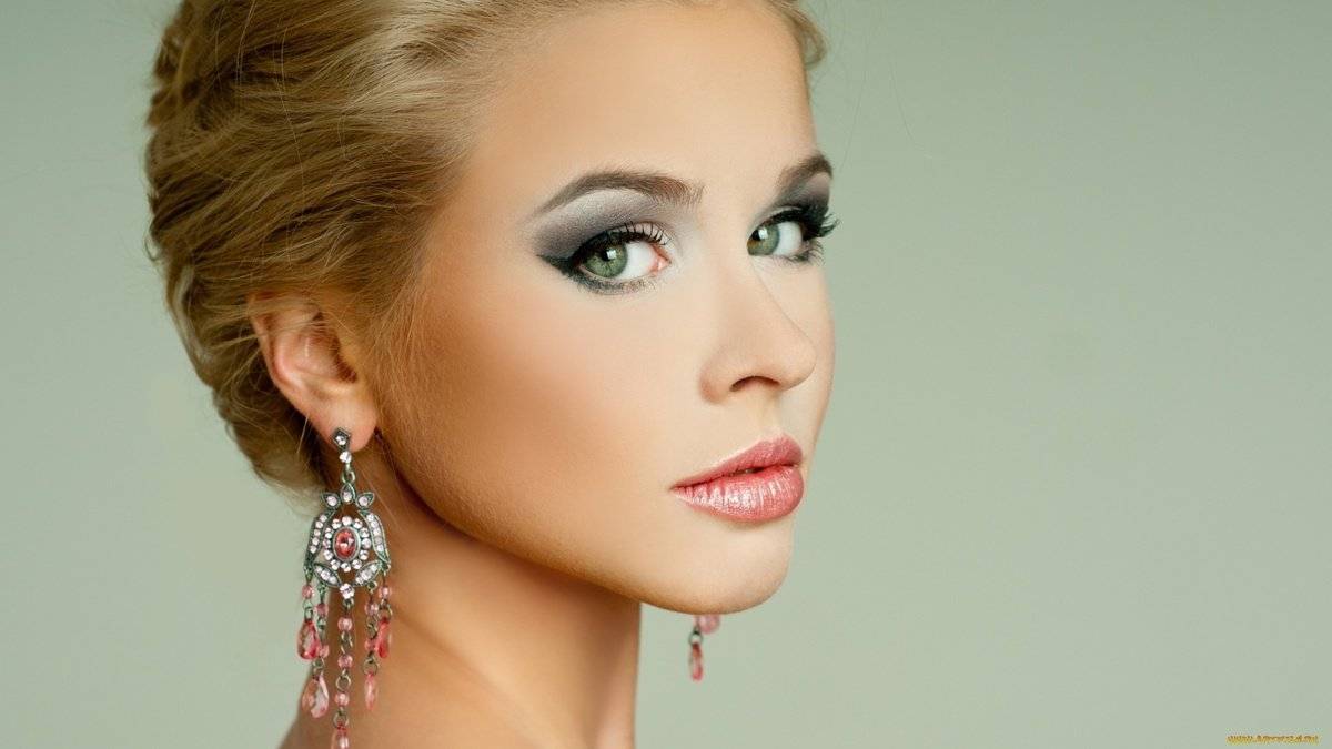 При вечернем мейкапе разрешен перламутровый визаж, с коричневыми стрелками на верхней линии ресниц. Румяна и помаду выбрать насыщенных оттенков. Женщинам со светлыми волосами категорически не рекомендуется красить глаза розовым и покрывать ресницы коричневым.