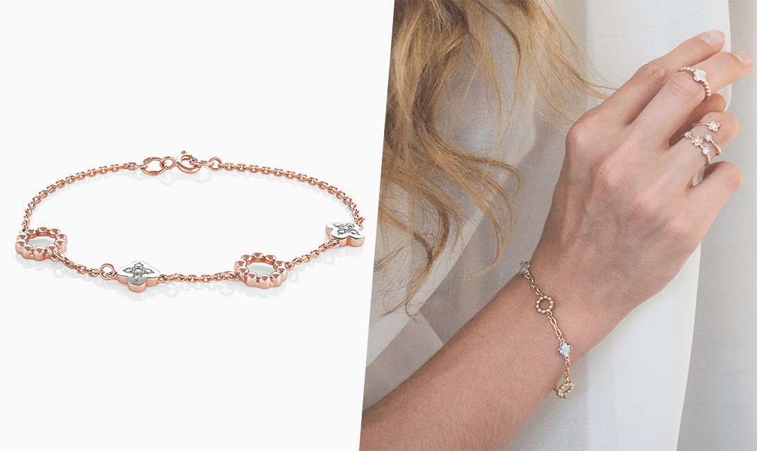 Главное правило выбора: браслет должен быть из того же материала, что и кольца с серьгами. Если у нее нет ничего из розового золота, то и такой браслет будет ждать следующих аналогичных подарков