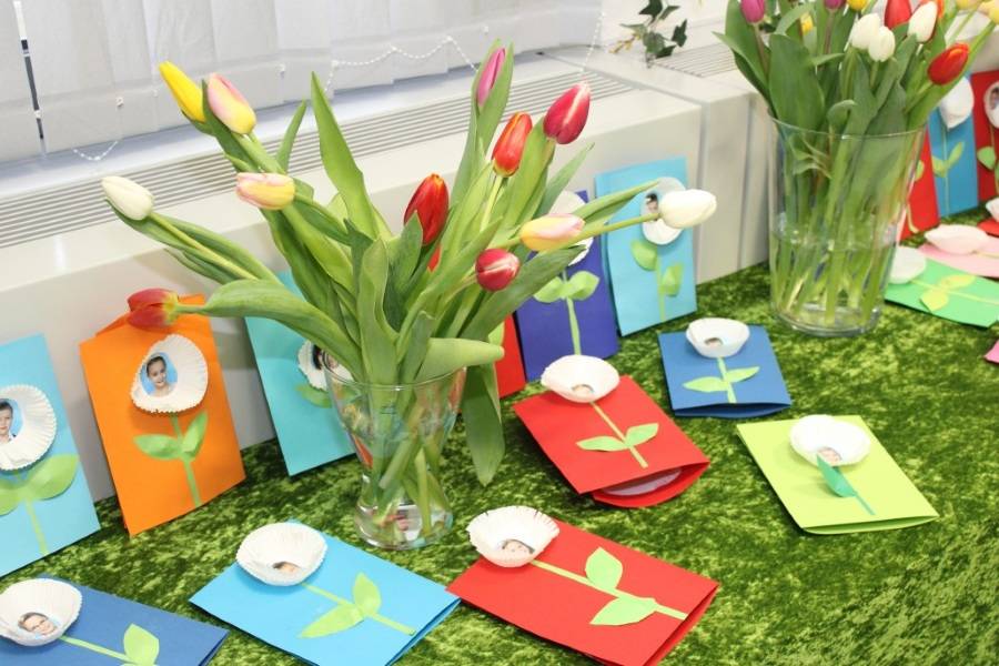 Можно отдельно оставить мальчишек после уроков, когда они смогут разучить найденные вами для 8 марта стихи, смастерить открытки, небольшие сувениры. Эффектно смотрятся букеты из бумажных цветов, воздушные шары, разнообразные тематические аппликации и рисунки.
