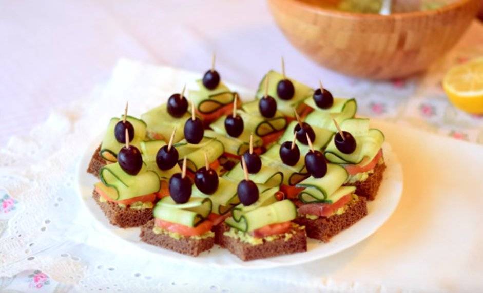 Канапе с маслинами и сыром на шпажках к праздничному столу