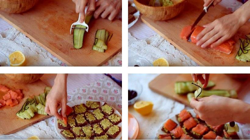 Как сделать канапе с авокадо и красной рыбой на шпажках
