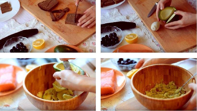 Как известно, плоды авокадо очень полезны, к тому же, мякоть, правильно заправленная лимонным соком, мягко подчеркивает вкус слабосоленой рыбы.