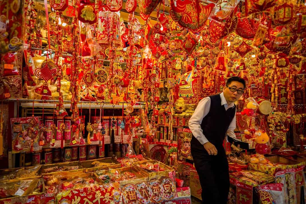 Красный вообще самый новогодний цвет Китая, и во время этого праздника он присутствует везде.