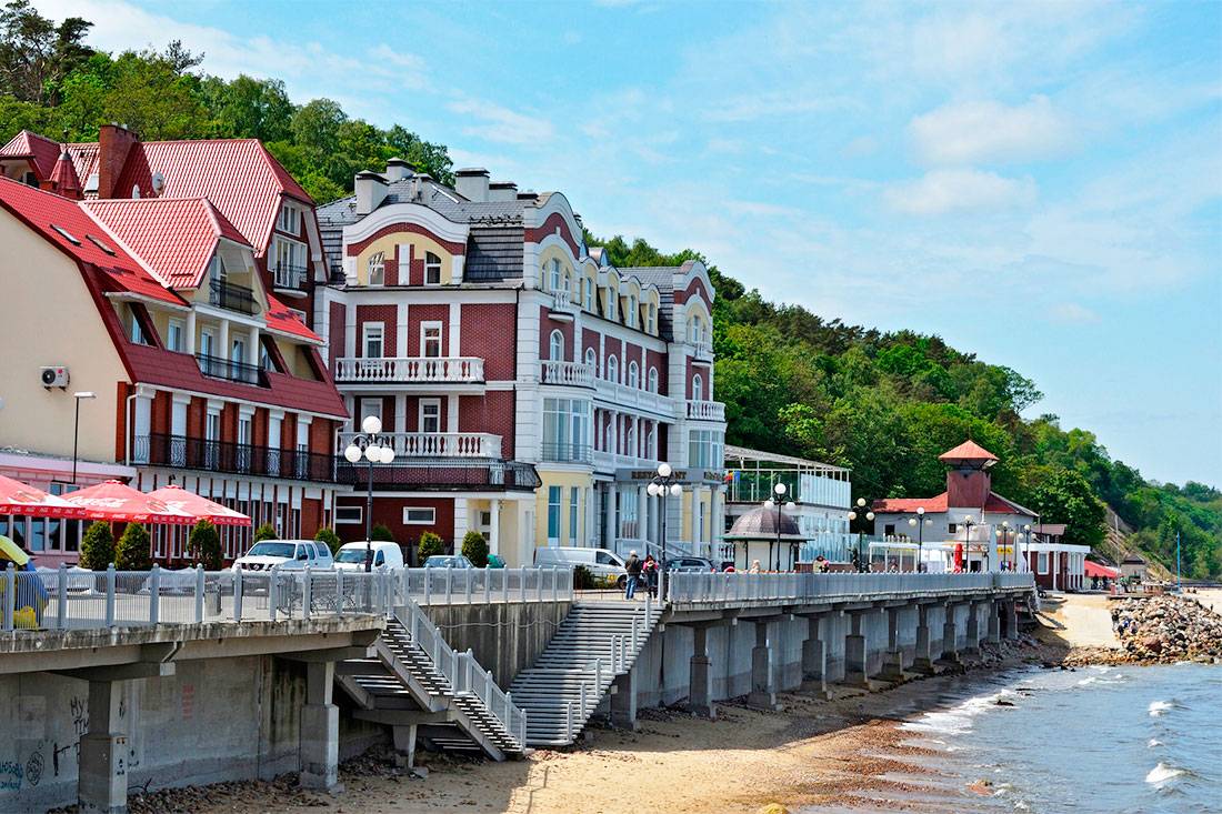 Главная достопримечательность города — Балтийская коса с пляжами. Северо-восточная сторона длиной 35 км принадлежит России, остальной частью владеет Польша. От материка российская часть Балтийской косы отделена судоходным Калининградским каналом. На косе расположены два посёлка — Коса и Рыбачий, есть военно-исторические памятники — полуразрушенный прусский форт «Западный», построенный в 1871 году, бывшие склады боеприпасов Люфтваффе, заброшенный немецкий аэродром «Нойтиф».