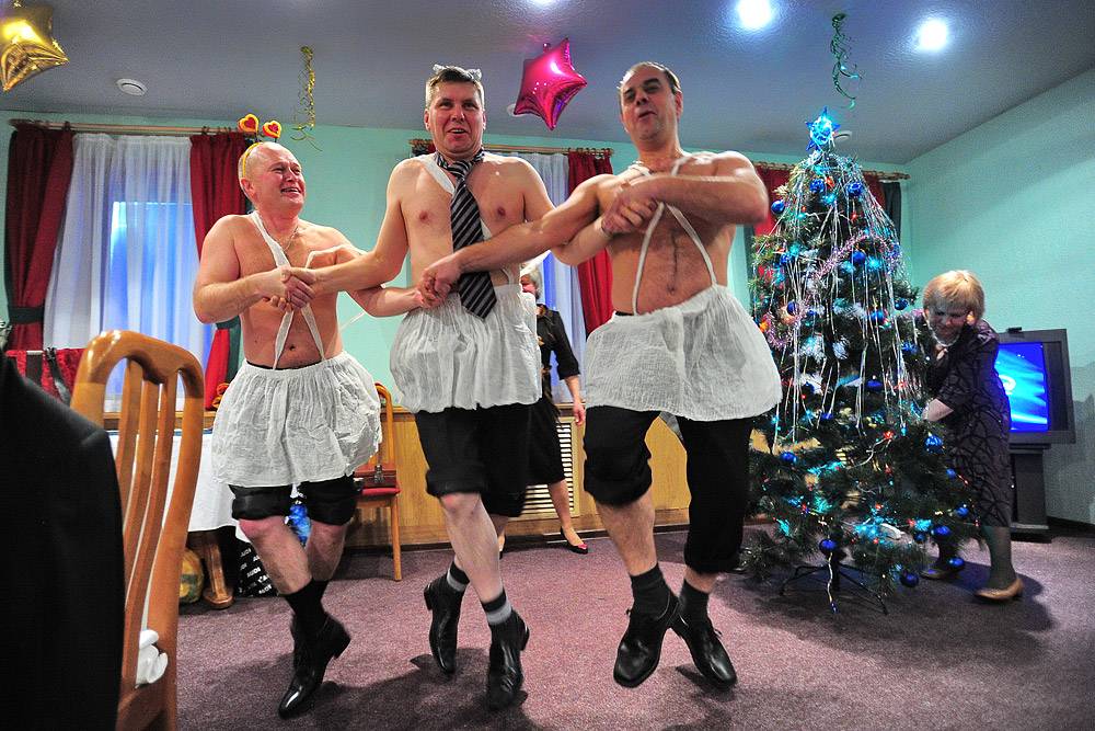 Последней звучит «Яблочко», предлагается сплясать в присядку.